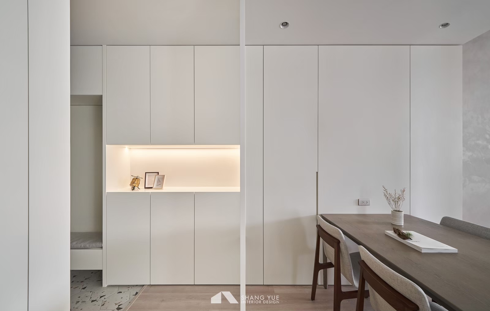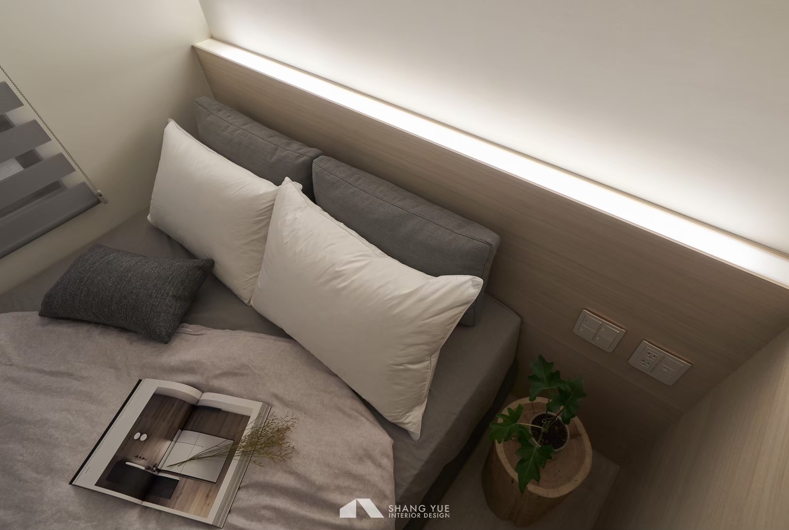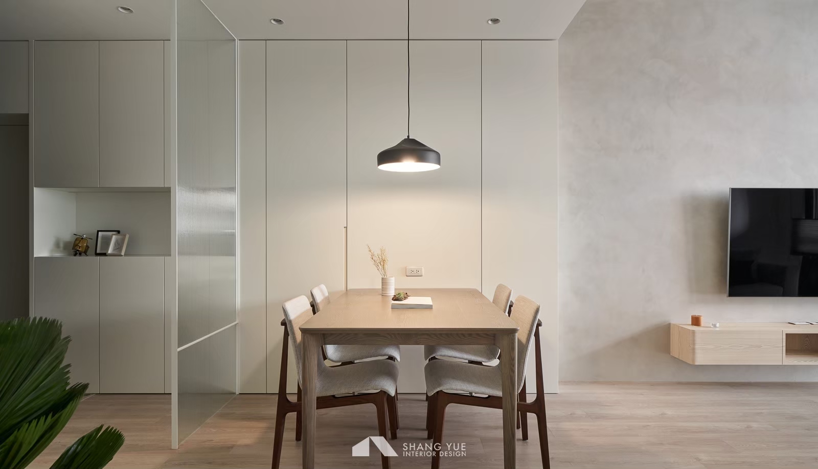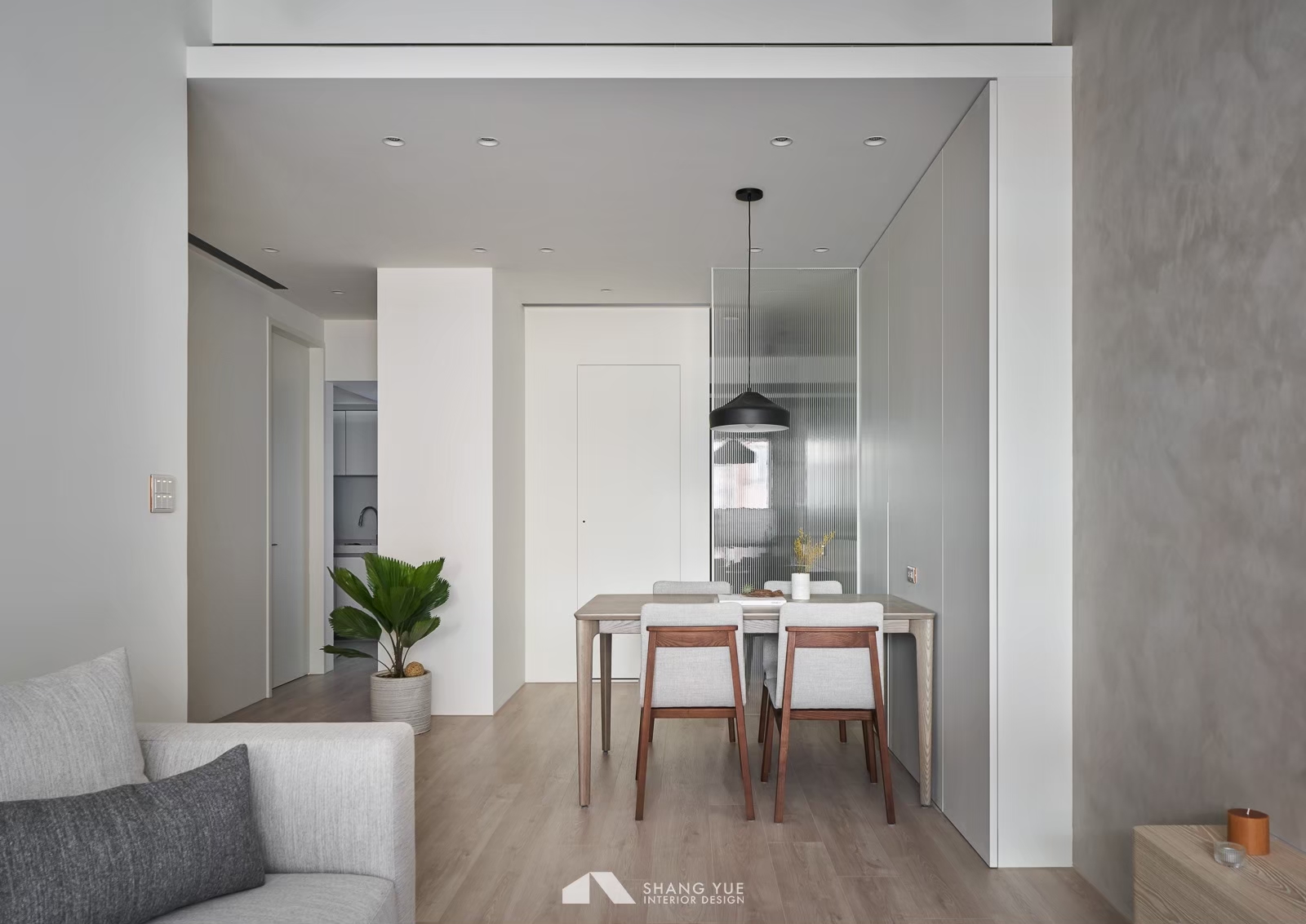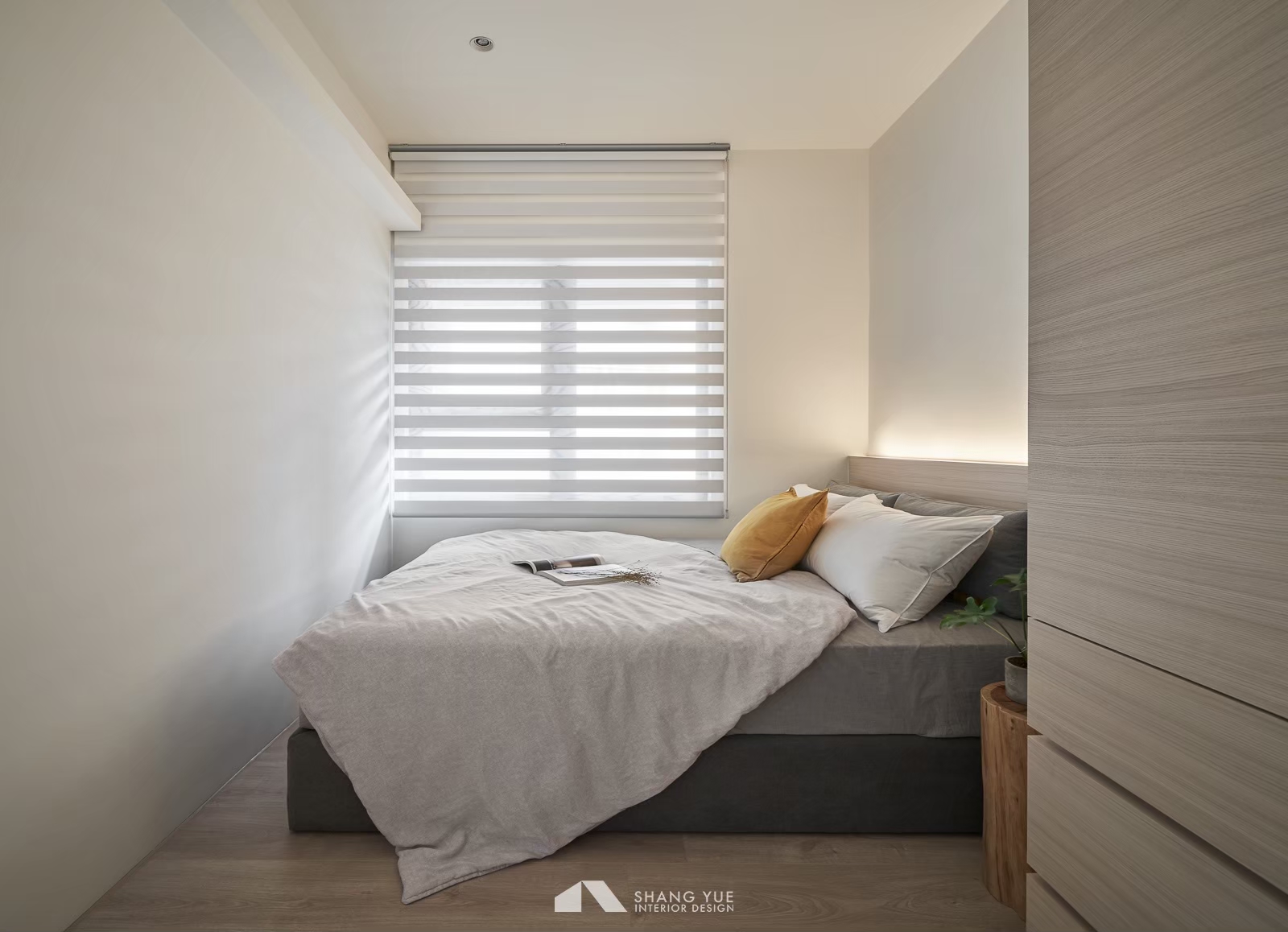 午後的陽光輕輕穿過半開的蜂巢簾,在地板與沙發上灑下柔和光影。簡約的米色沙發沿牆而置,飽滿的比例與厚實坐感,承接著日常裡的每一次放鬆。 幾顆跳色抱枕為空間添上一抹輕快,如同靜謐畫面中的輕聲問候,溫柔地收攏起節奏,在小而恰好的尺度中,藏著生活最純粹的片段。
