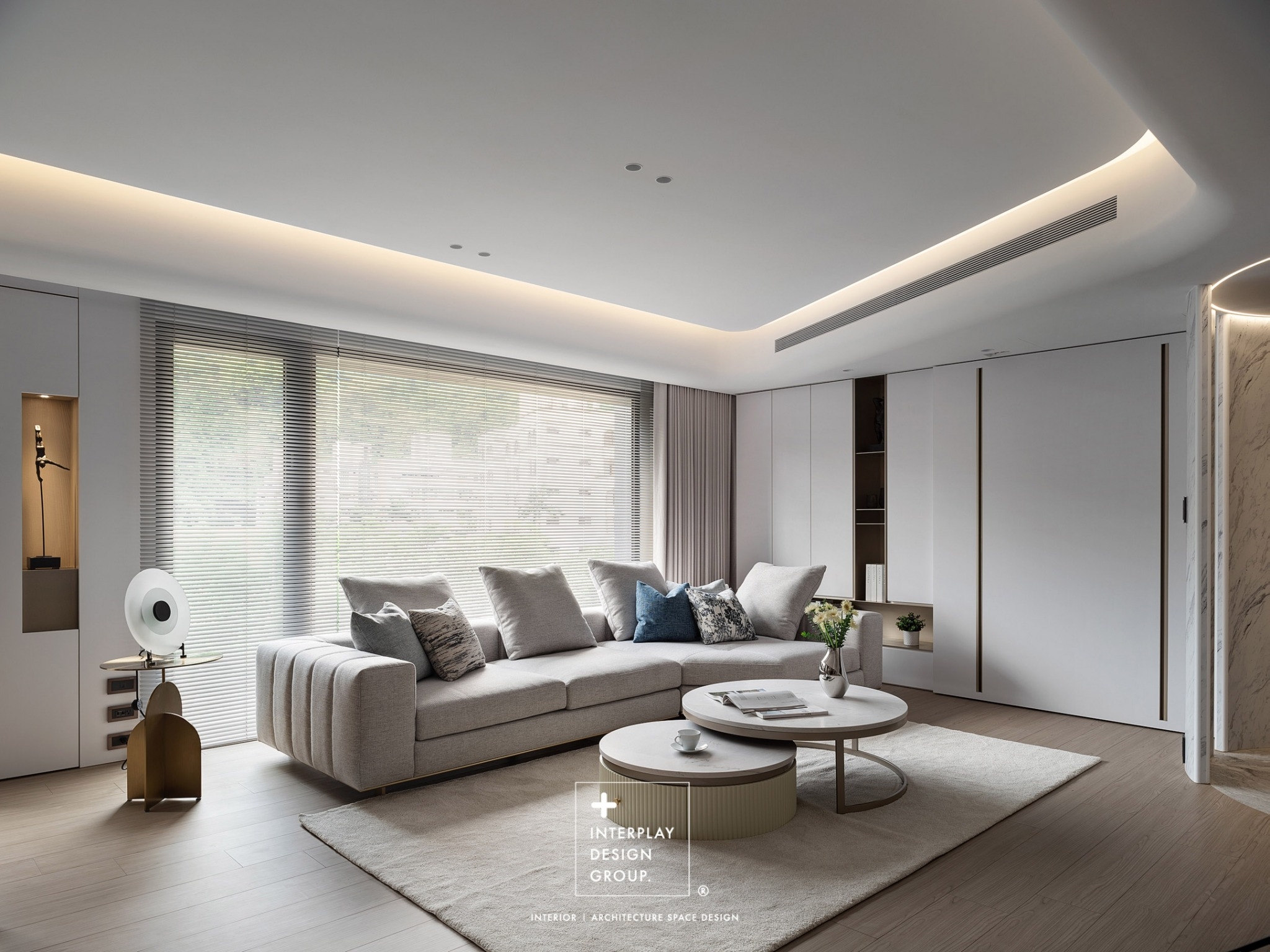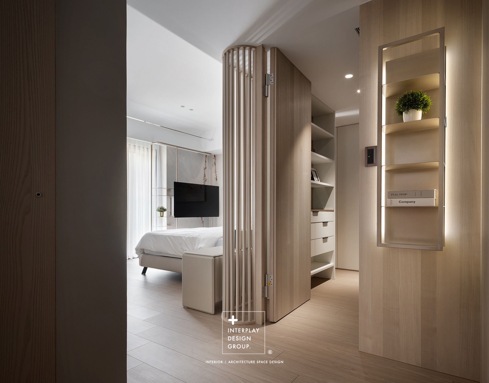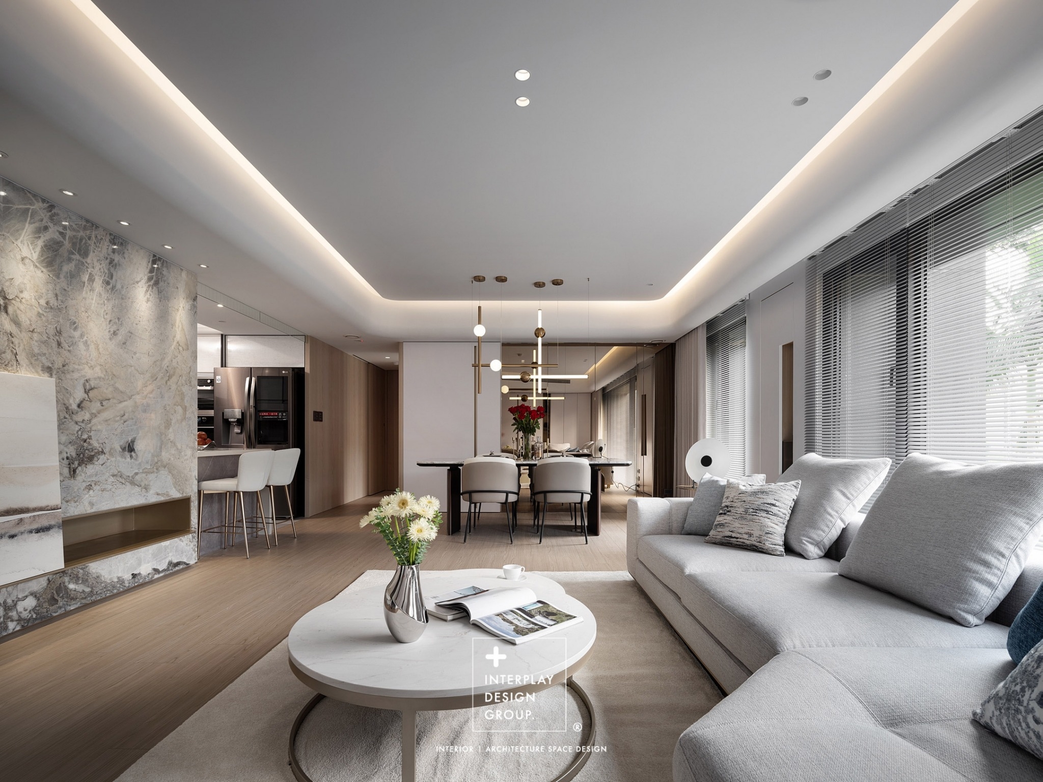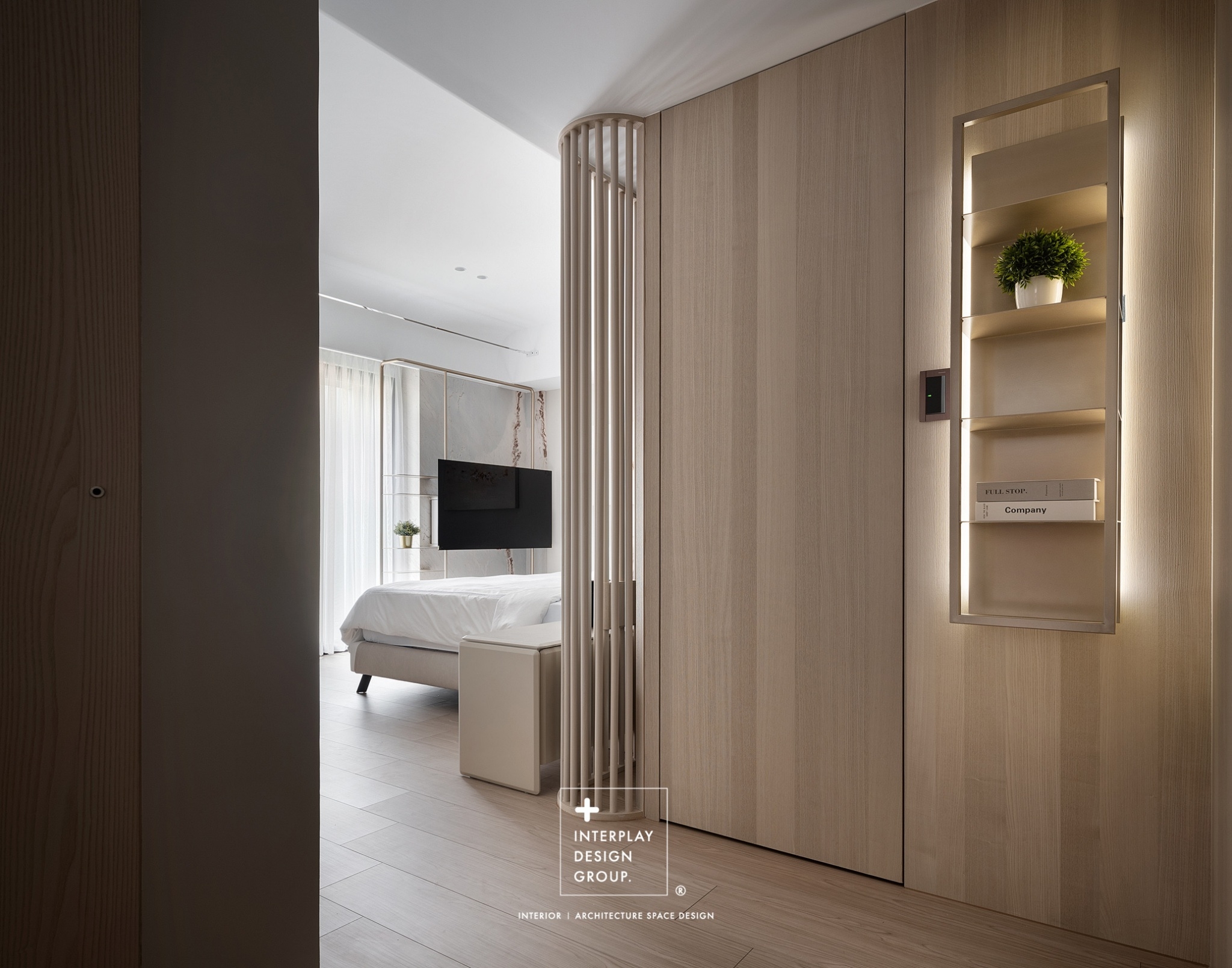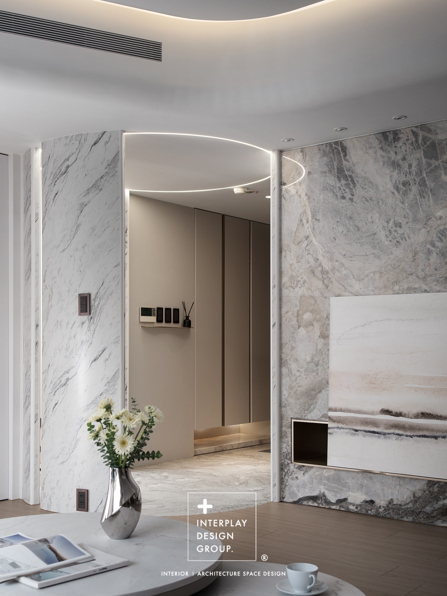 暖光從底部隱約透出,映照著深紅色櫃體的沉穩與優雅,如同空間中一抹細緻的情緒。大理石餐桌邊,米白色餐椅靜靜排列,線條柔和,氣質,卻蘊含溫潤的力量。 桌上的紅玫瑰輕巧點綴,在色系中釋放出一絲柔情。整體氛圍乾淨而有節奏,光與色、實與虛,共同編織出一段靜謐而有情感溫度的生活場景。